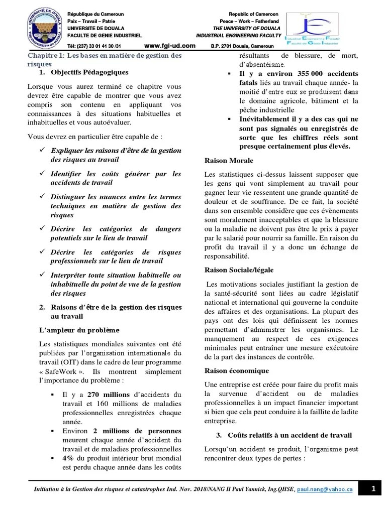 Organisme Gestionnaire De L'accident Du Travail : Chapitre 1 Les Bases En Matieres De Gestion De Risques Ind Nov 2018 Pdf Risque Gestion Des Risques